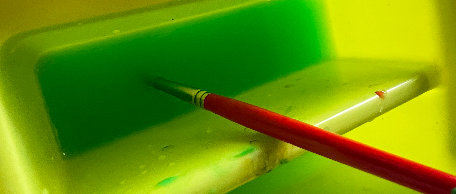 1.固まってしまった筆をぬるま湯(40〜50℃)に浸すー毛の部分だけ。5分〜数時間。