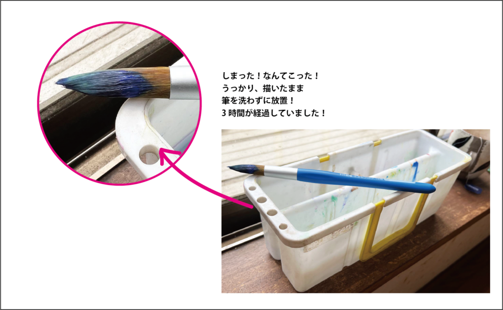 「せっかく買ったアクリル絵の具用の筆が、翌日にはカチカチに固まって使えなくなってしまった」