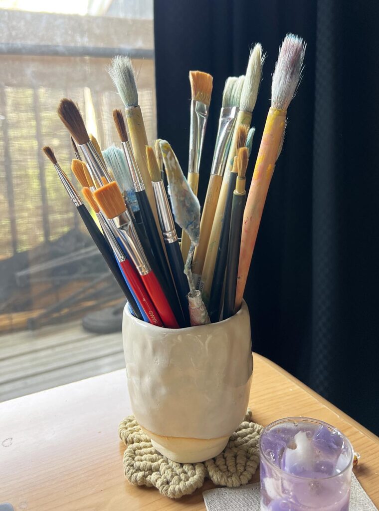 アクリル絵の具初心者におすすめの筆の洗い方1:描画中