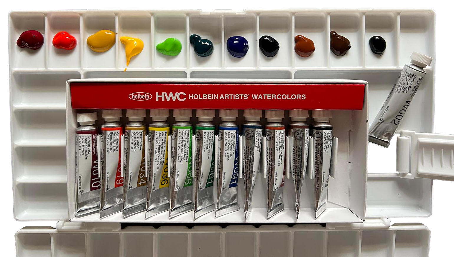 絵の具を出す順番は、できれば購入した絵の具が箱の中で並んでいる順に入れていくと、出し忘れなどがなく綺麗に収まります。