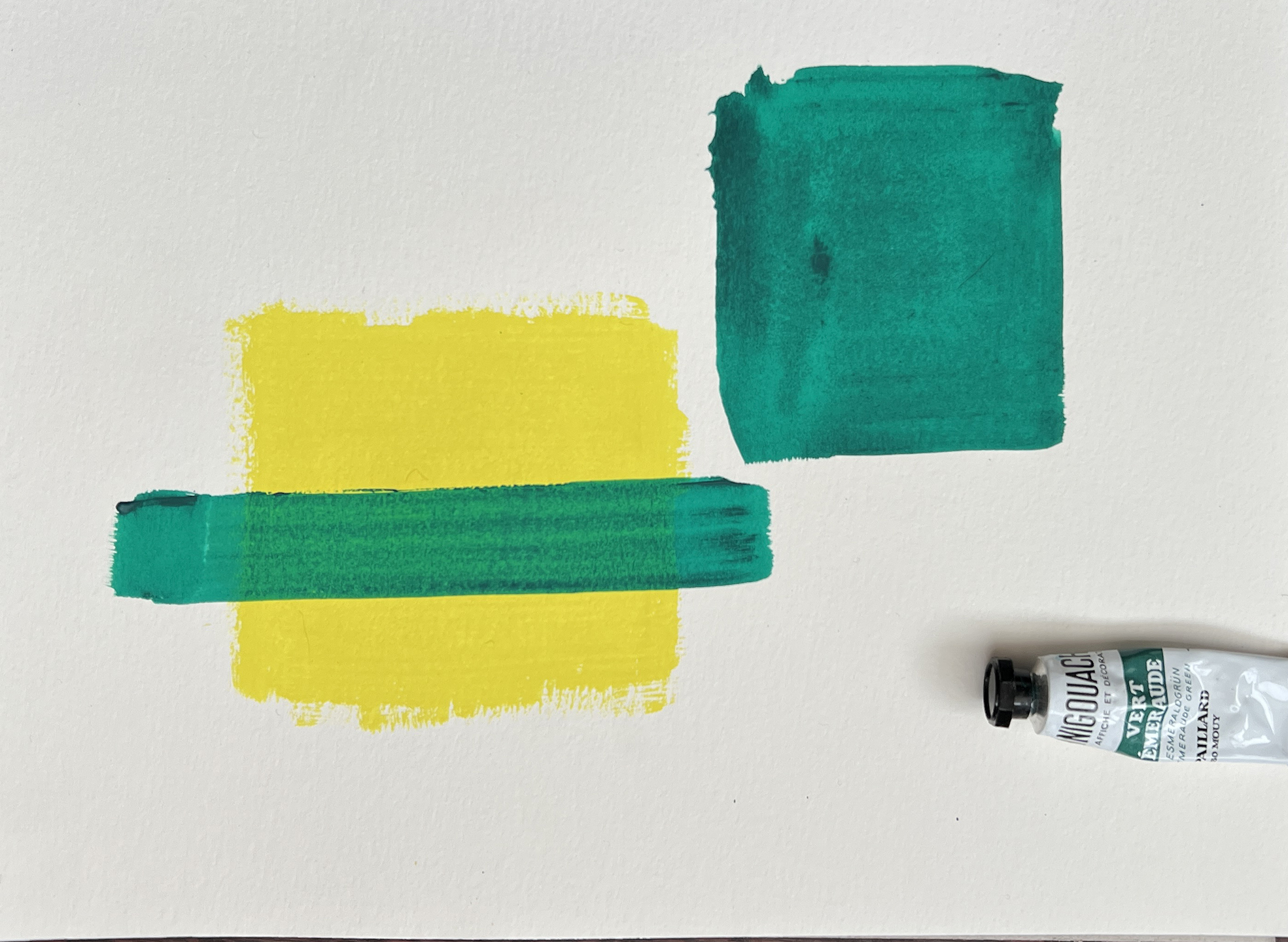 透明水彩絵の具よりも顔料の量が多いため不透明になります。