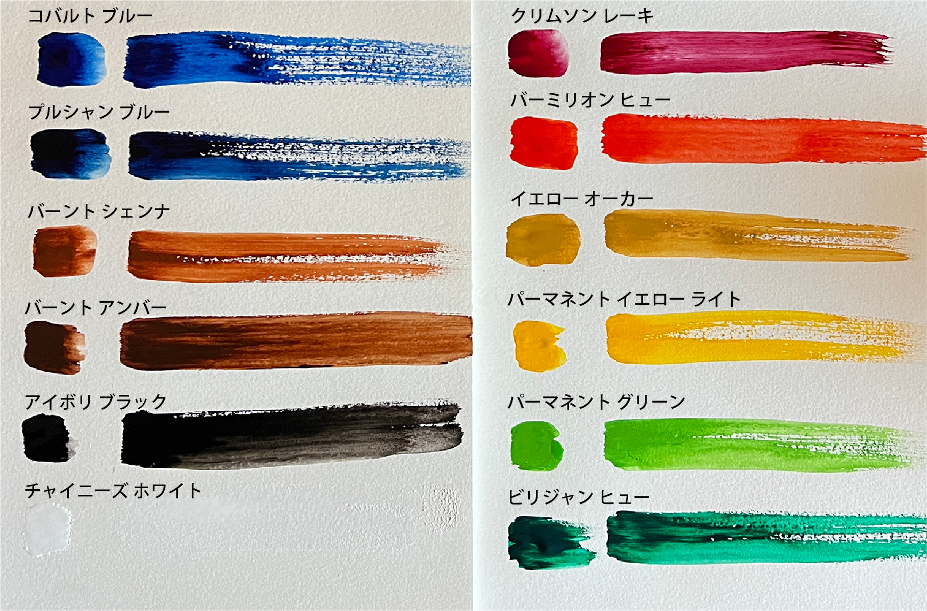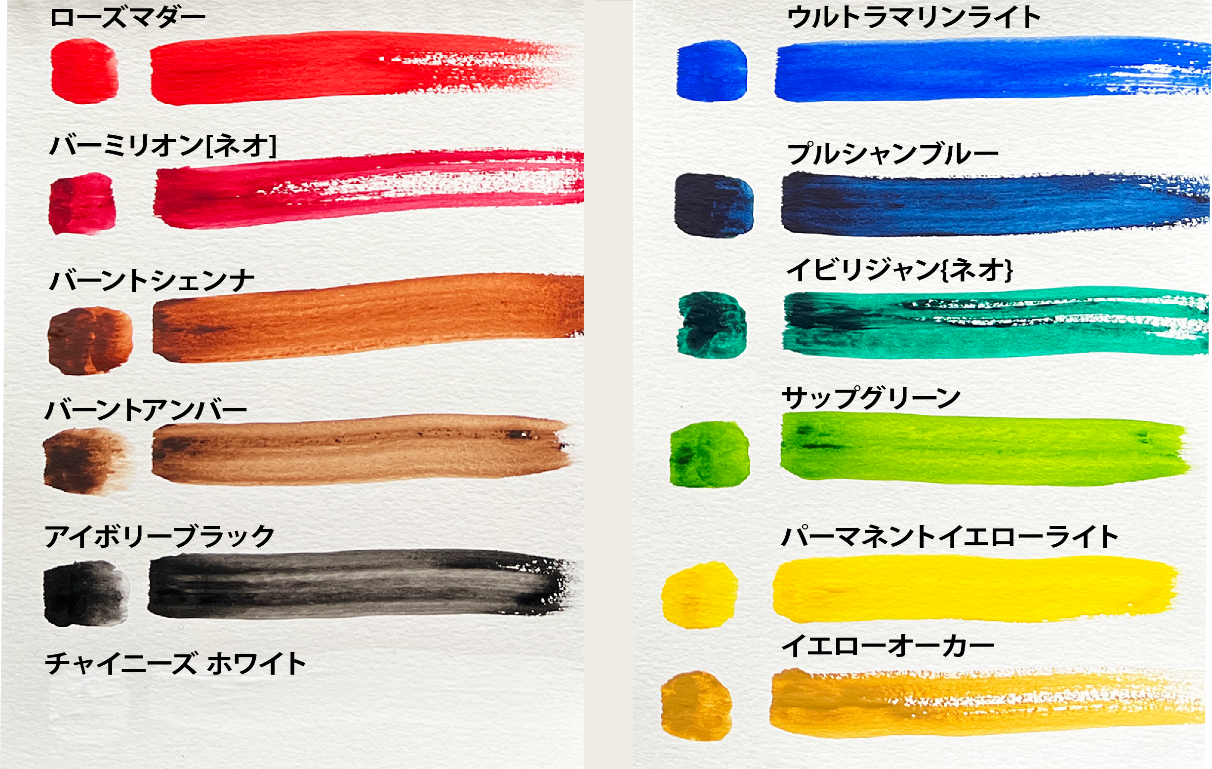 ホルベイン水彩絵の具 12色名称と実際のカラー