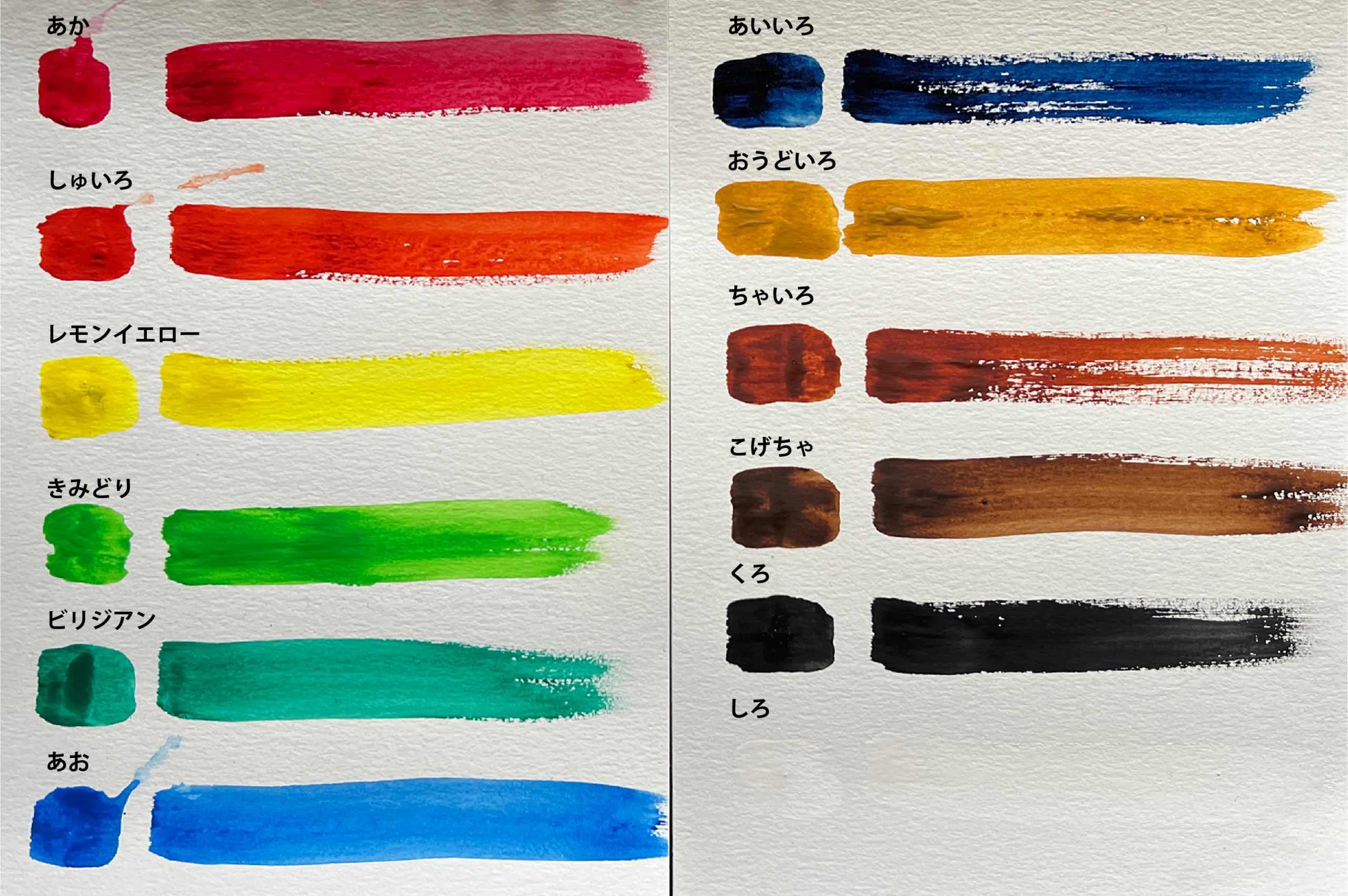 クサカベ水彩絵の具 12色 名称と実際のカラー